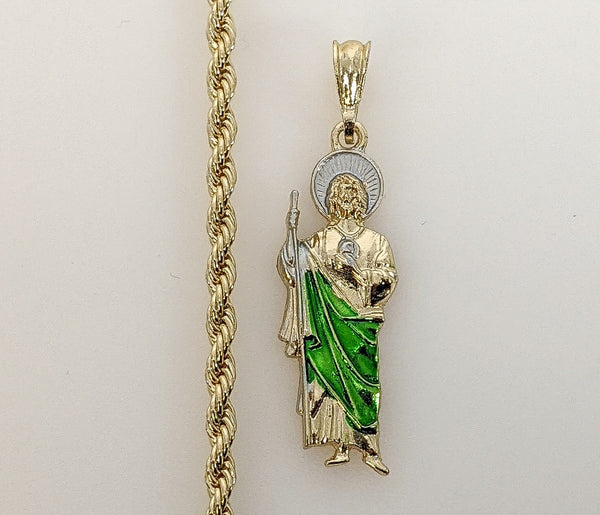 - St Jude Necklace Contains Medium Pendant (Multicolor) and Chain (14K Golden)
